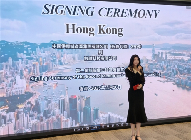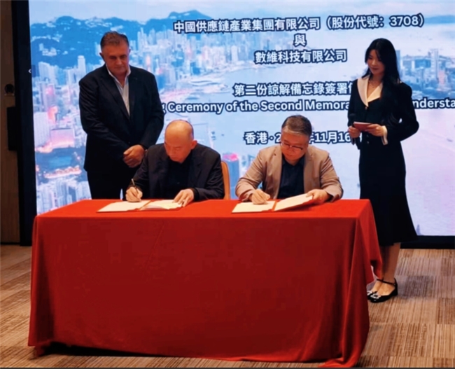 (香港,2025 年 11 月 16 日) —中國供應鏈產業集團有限公司(「本公司」或「3708」)(股份代號:3708)今日宣布,與 Tetronis Limited 正式簽署第二份諒解備忘錄(MOU),雙方將在香港以突破性的 「Kodon 技術」 建設全球首座 「辦公室級超高密度數據中心」。